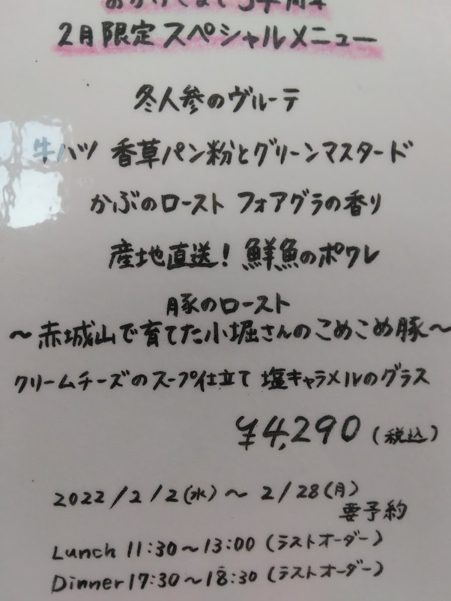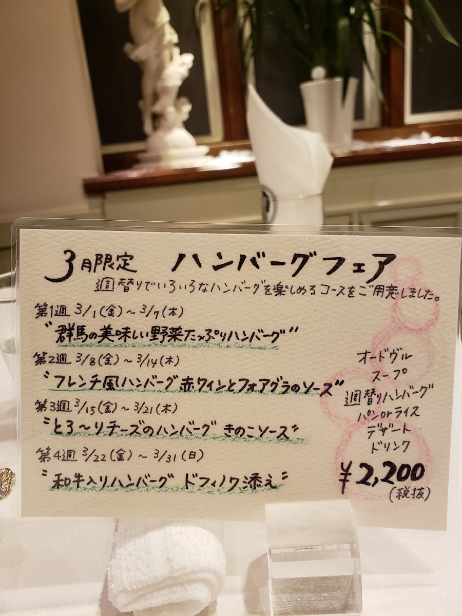 As a reviewer reflecting on the overall menu experience at La Ruche, the dinner offering feels deliberately focused and refined. The highlight of the menu is the dinner course ルージュ, which encapsulates the restaurant’s culinary identity through a sense of balance, elegance, and thoughtful composition. Rather than overwhelming guests with an extensive list of choices, La Ruche’s approach allows diners to fully appreciate the craftsmanship and intention behind this single dinner selection. ルージュ stands as a signature expression of the kitchen, suggesting careful ingredient selection, harmonious flavors, and a cohesive progression that makes the meal feel complete from start to finish. As a conclusion to the menu overview, it is clear that La Ruche prioritizes quality over quantity, offering a dining experience that is concise yet memorable, and leaving a lasting impression through the depth and character of its dinner menu.